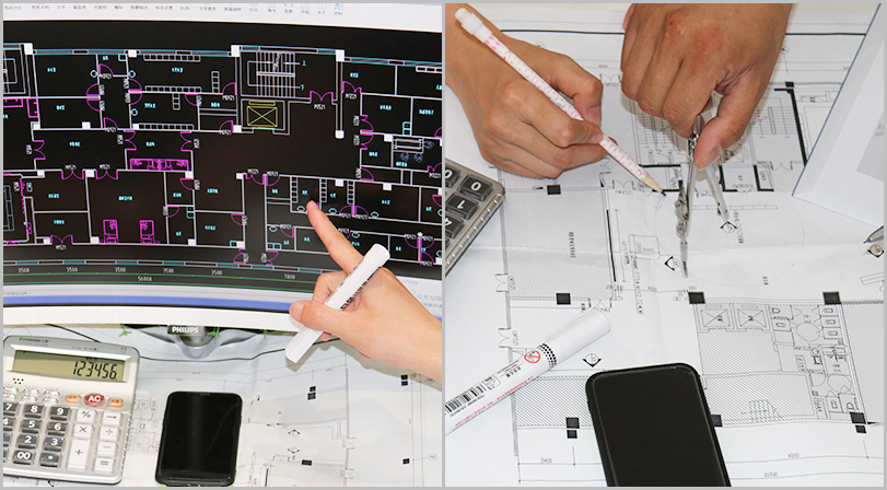 每承接一個工程,公司都會派出經驗豐富的技術團隊上門勘察、實地測量,提供工程設計方案。測量各個房間尺寸及造型情況,做好記錄,做到心中有數(shù)。